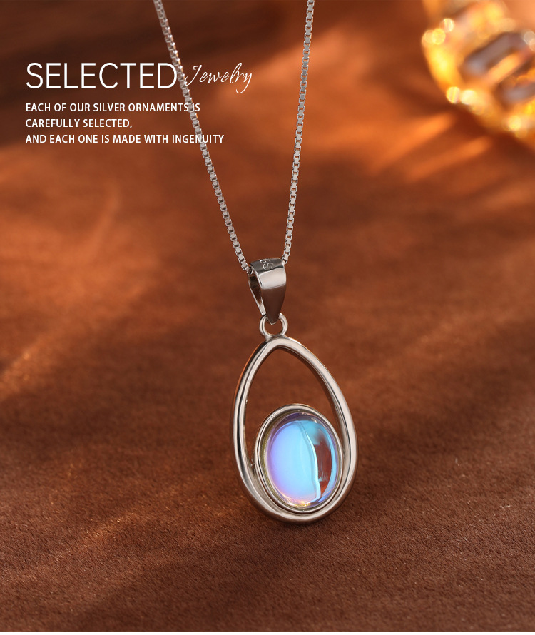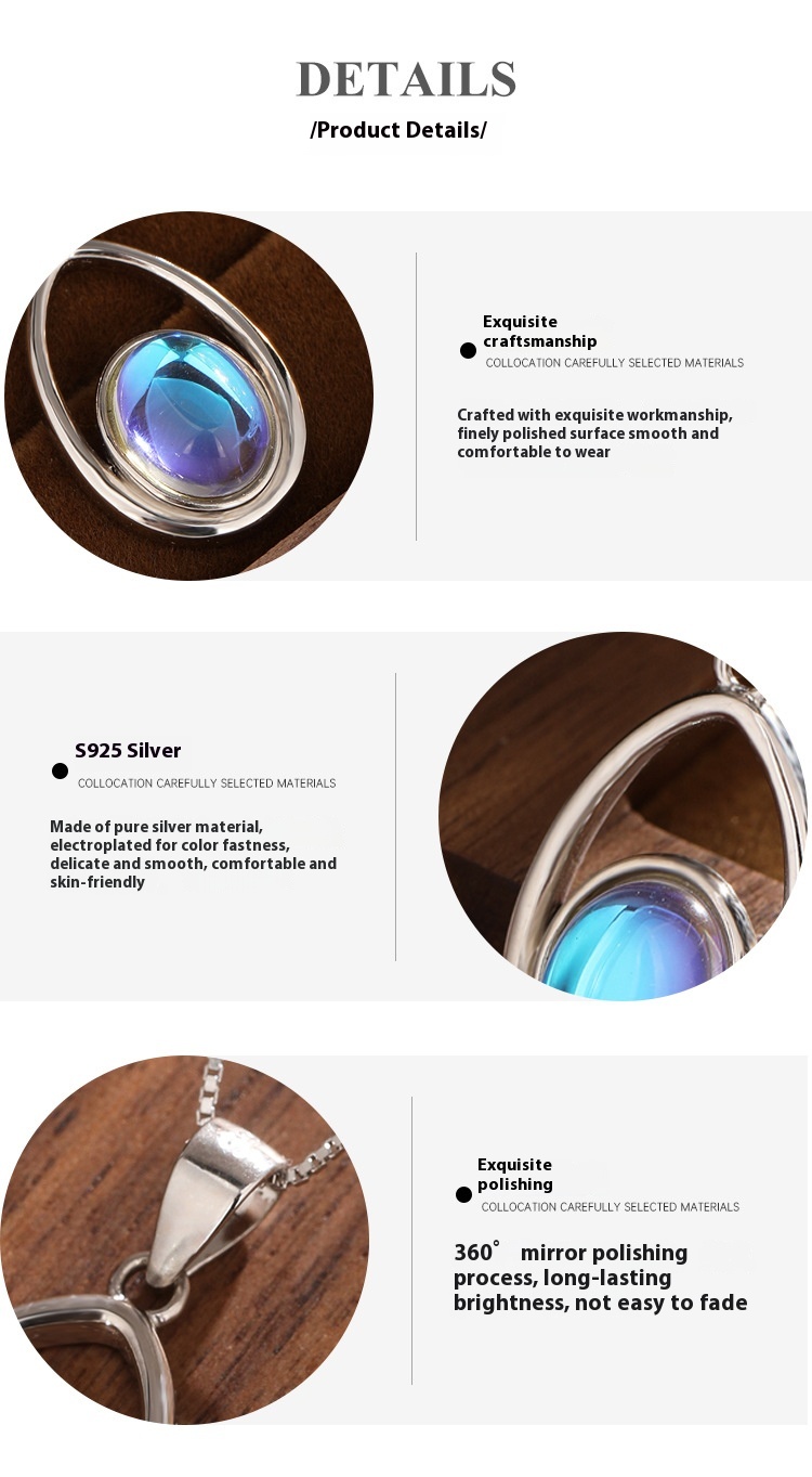 Rainbow Moonstone Pendant Necklace for Women | Genuine 925 Sterling Silver | June Birthstone Jewelry Gift